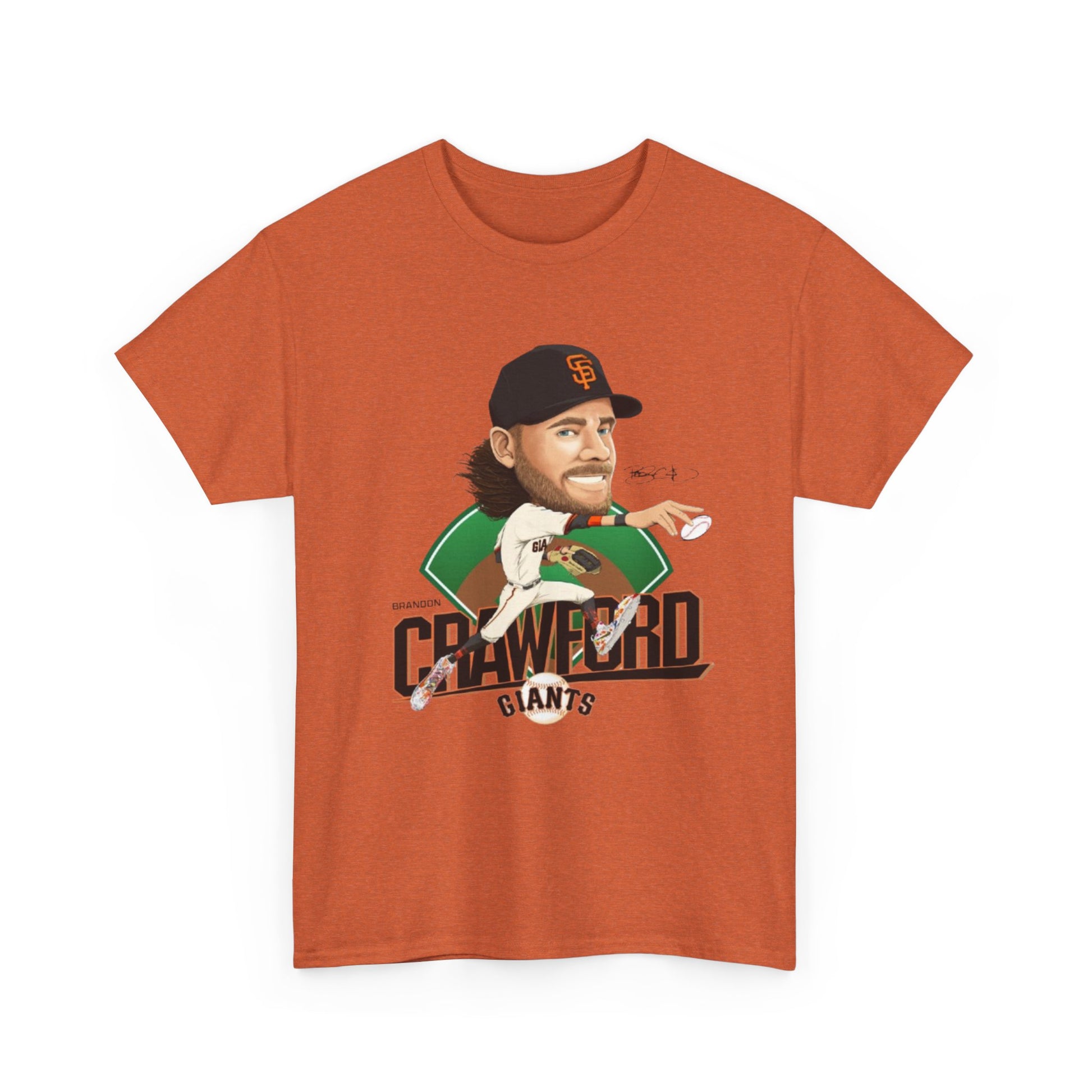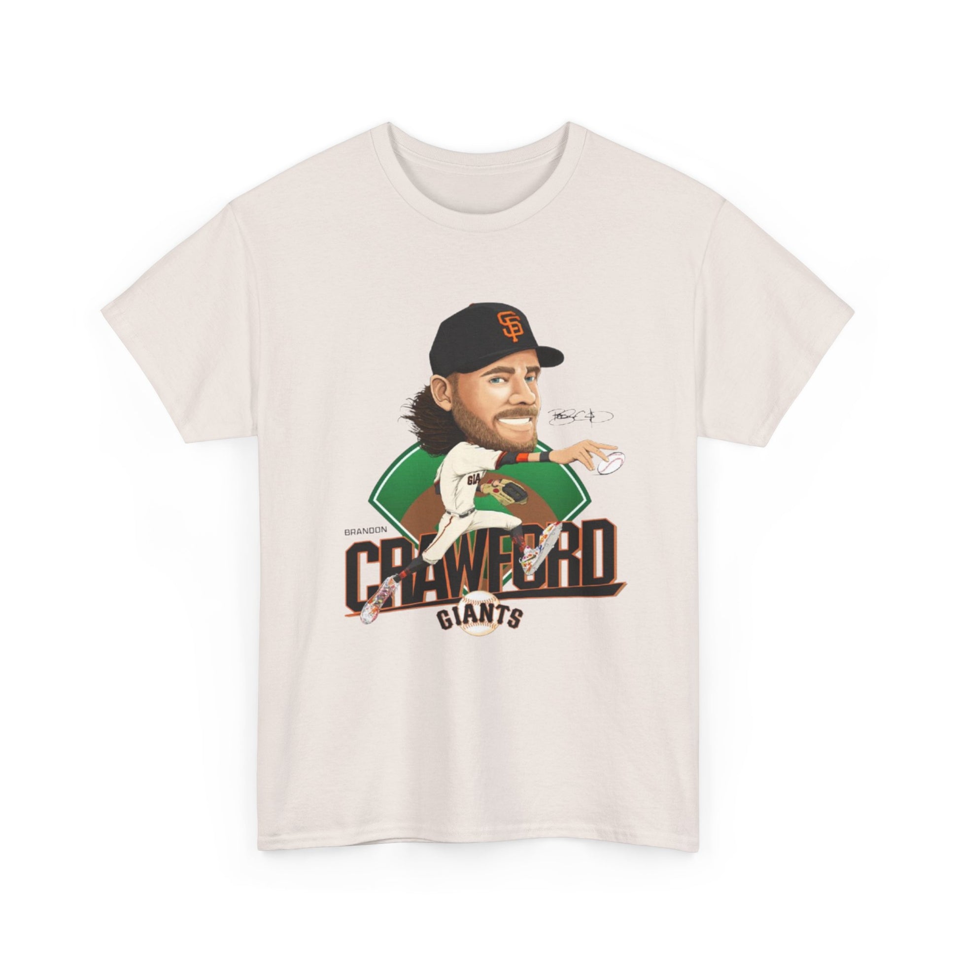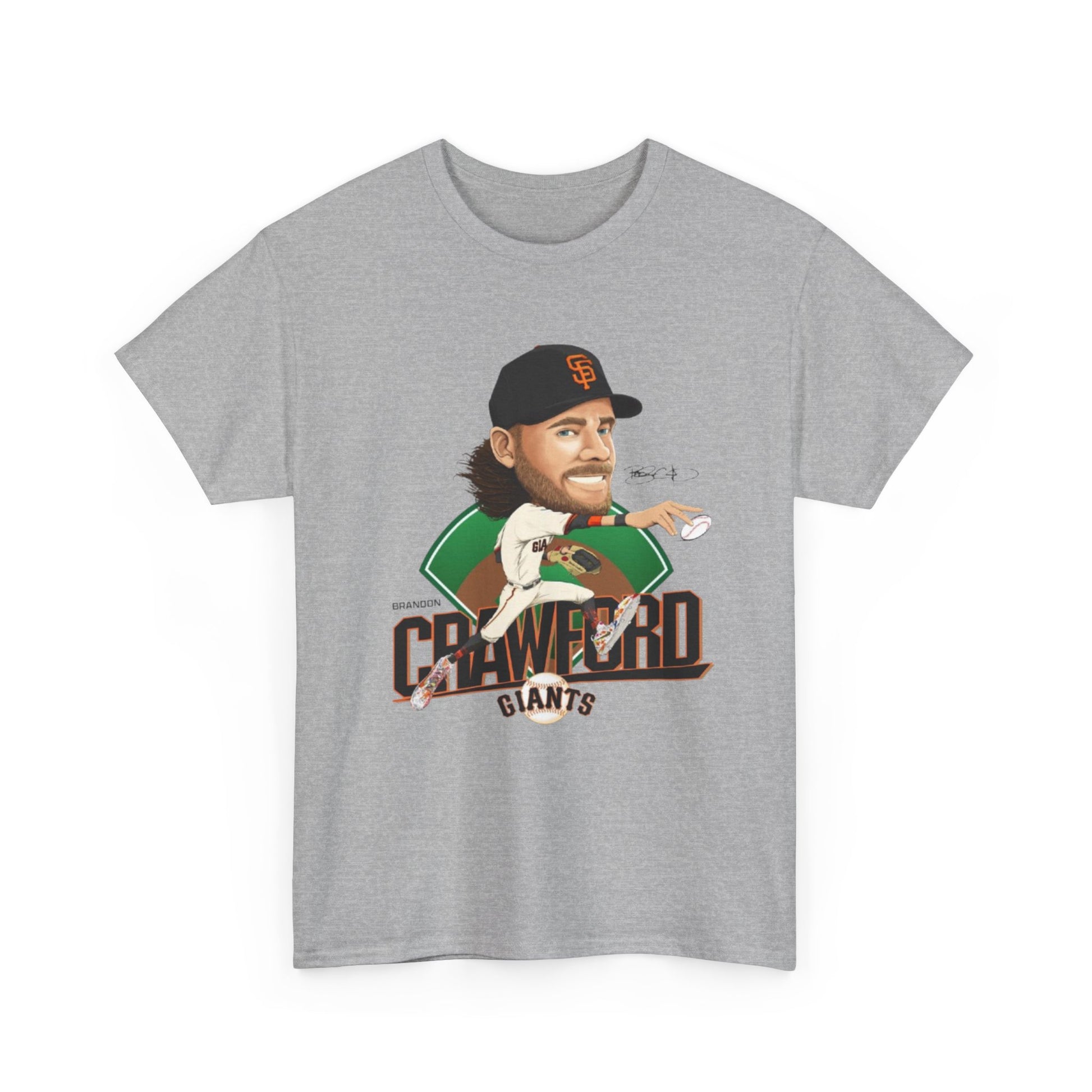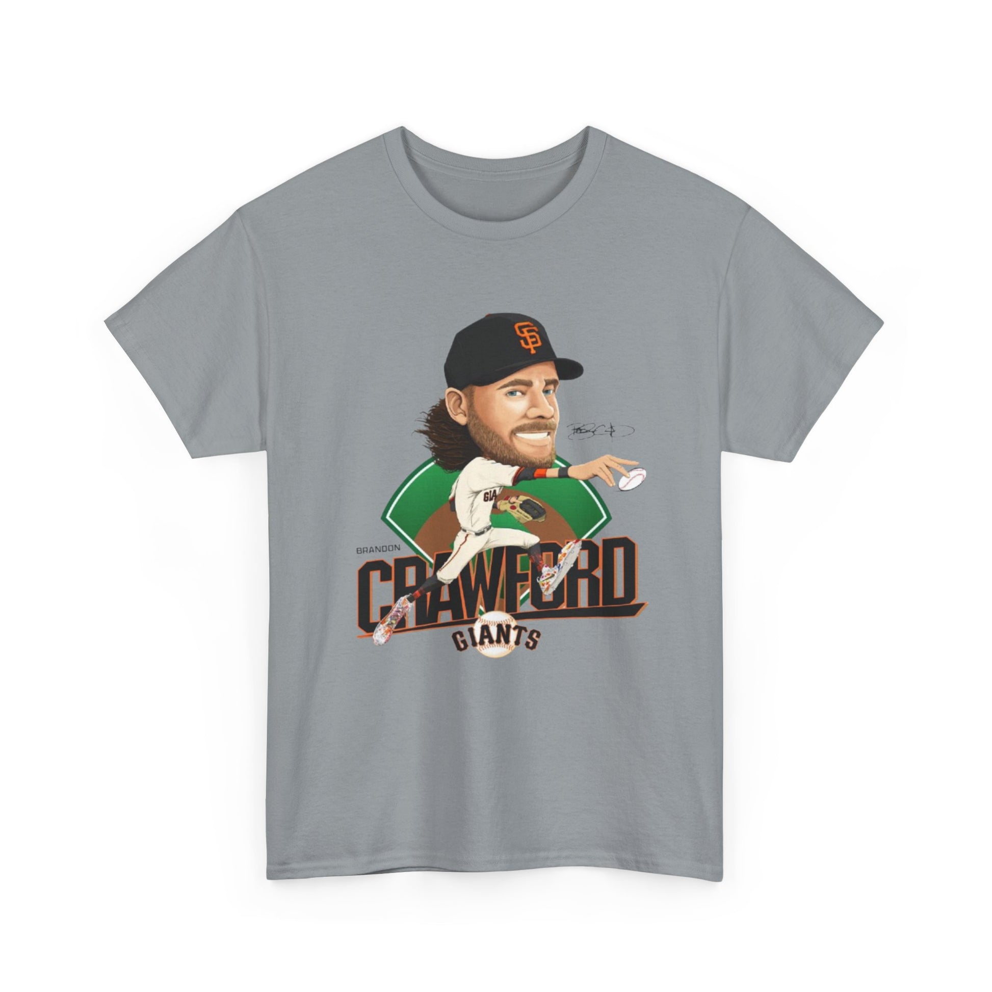 Celebrate the legendary career of San Francisco Giants Shortstop Brandon Crawford with this animated cartoon replica Tee. Perfect for baseball fans and supporters of Brandon Crawford, this Tee is ideal for wearing to games, sports events, or casual outings. A great gift for baseball lovers and a must-have for Giants fans.
