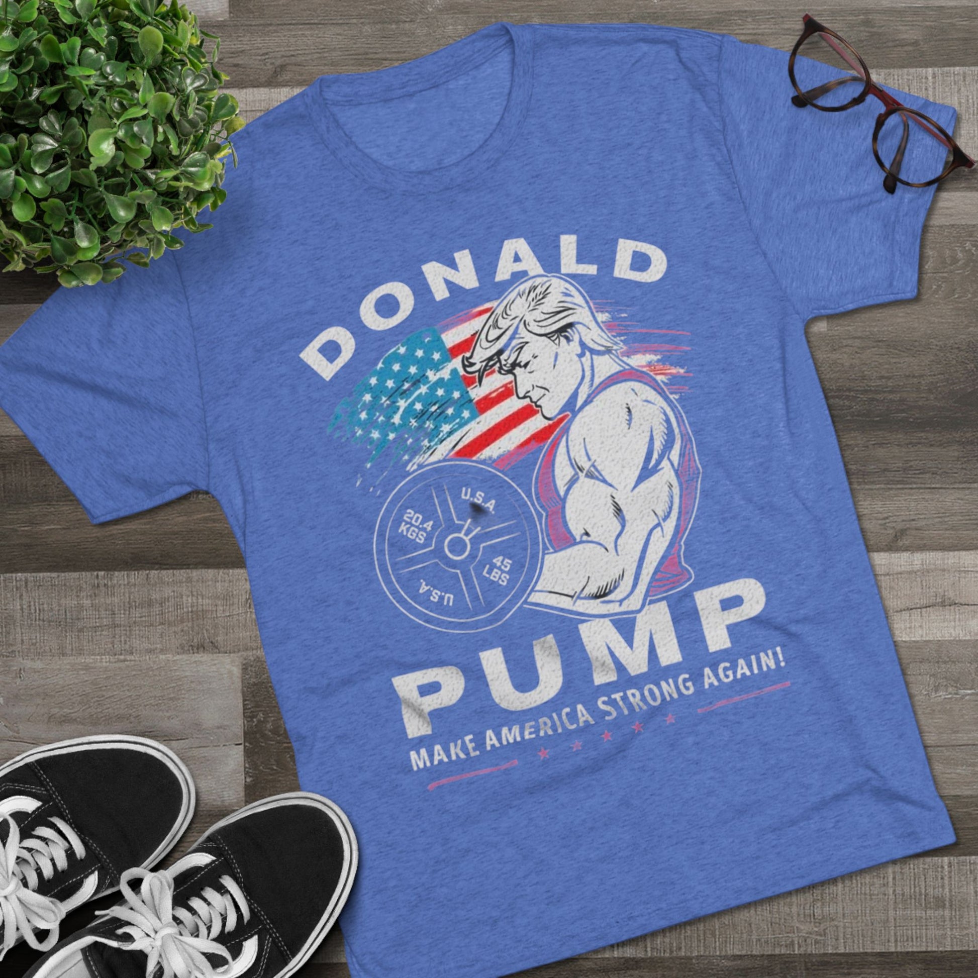 This Donald “Pump” Trump 2024 President Lifting Weights T-Shirt exudes a playful and humorous vibe, perfect for those with a sense of humor and interest in politics. It is a great addition to a casual wardrobe and can be worn during political events, rallies, or simply as a statement piece.