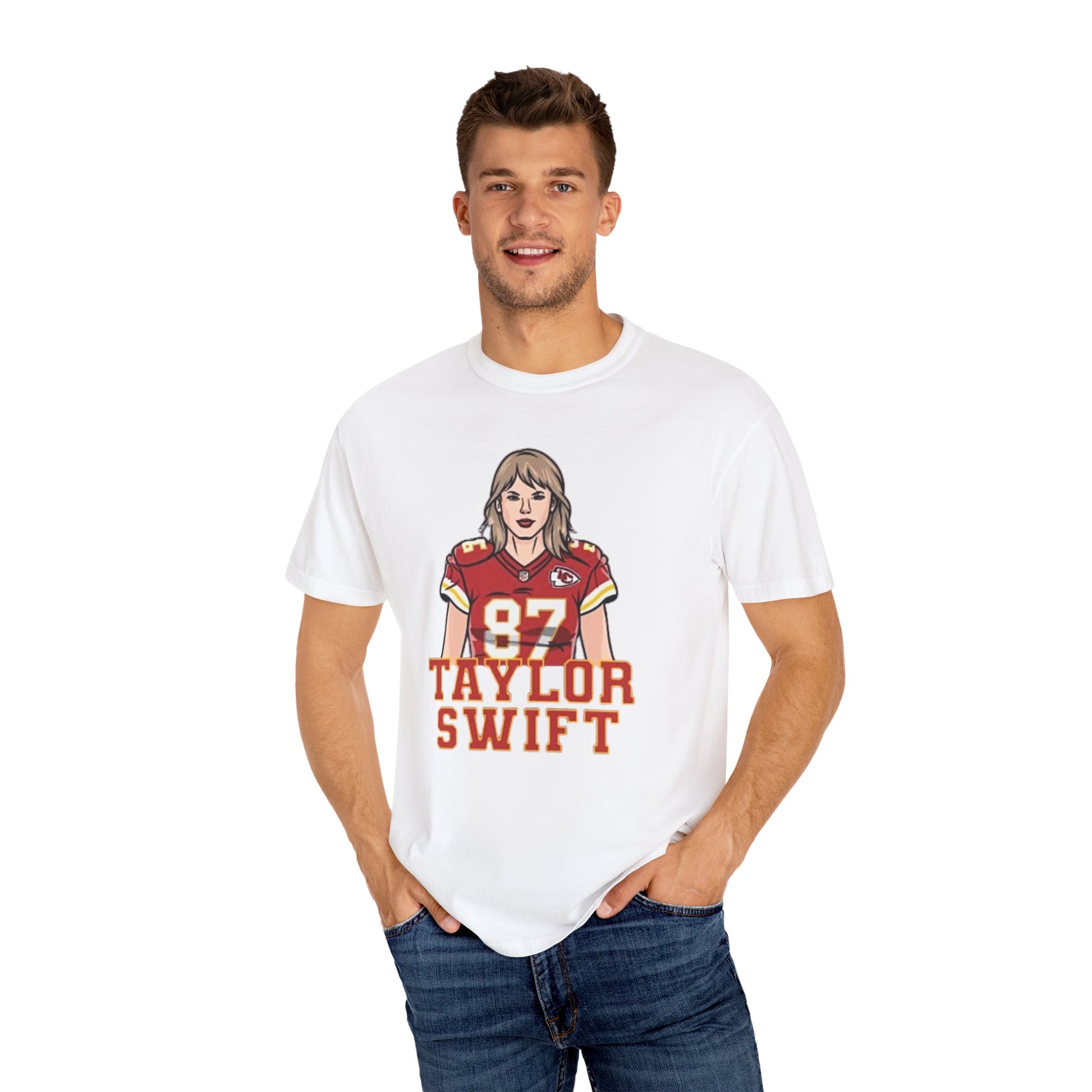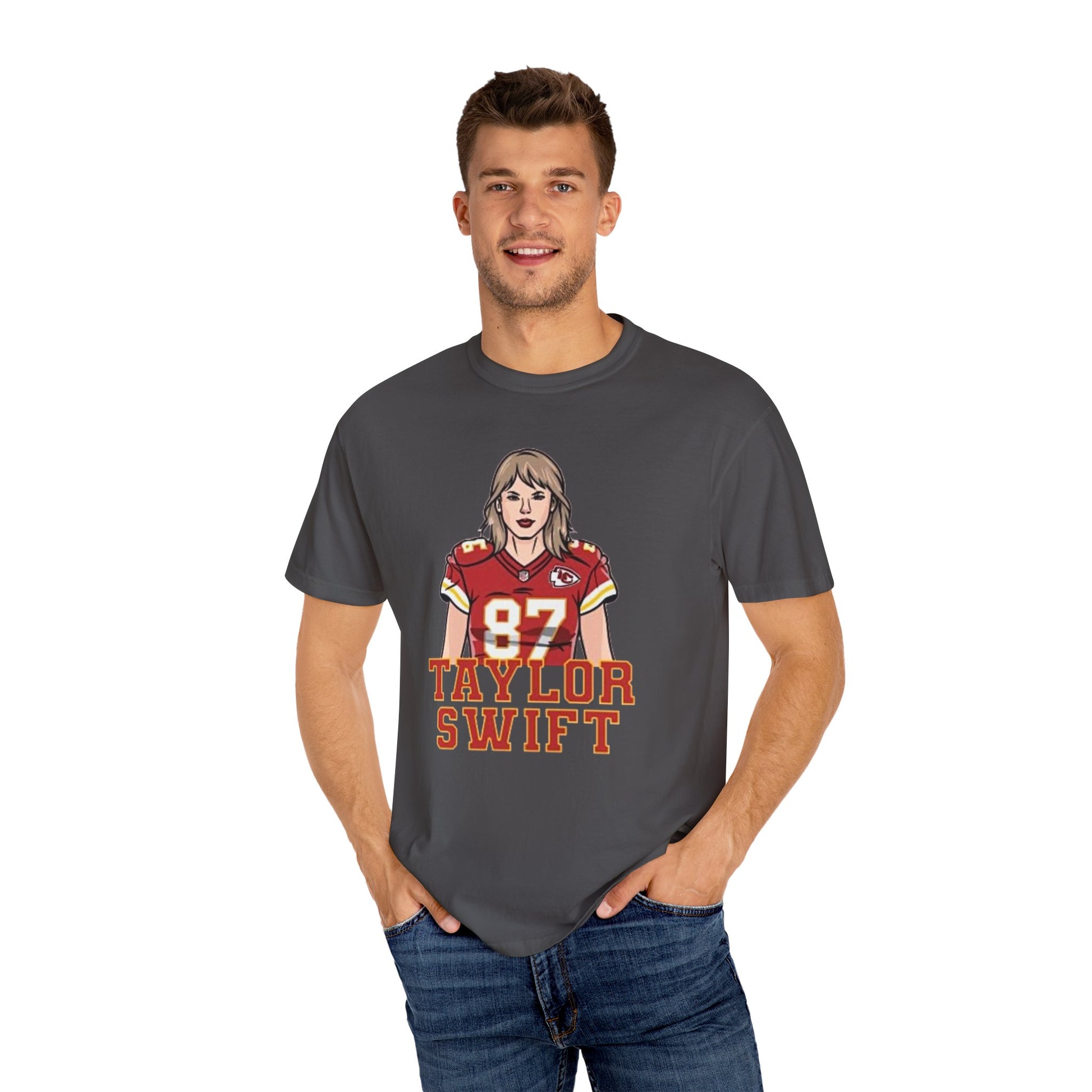 Support your favorite NFL team in style with this Kansas City Chiefs Football T-shirt featuring TSwift in Pads wearing #87 Travis Kelce jersey. Perfect for swifties, NFL fans, and Chiefs Football enthusiasts. Ideal for game days, tailgates, and casual wear.