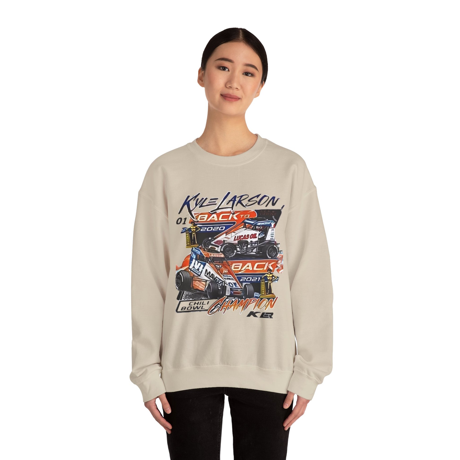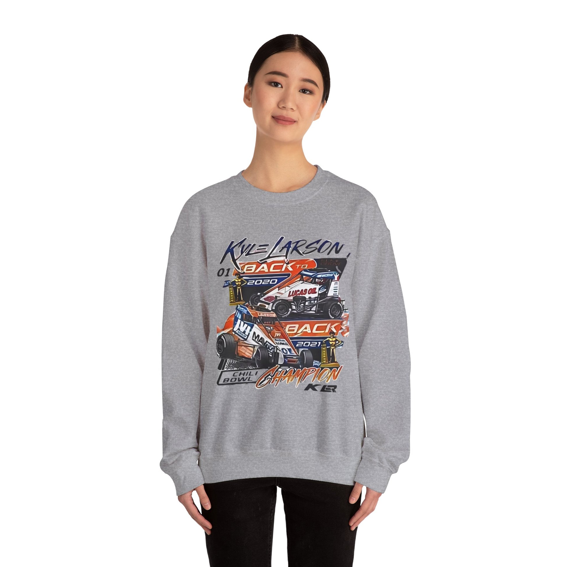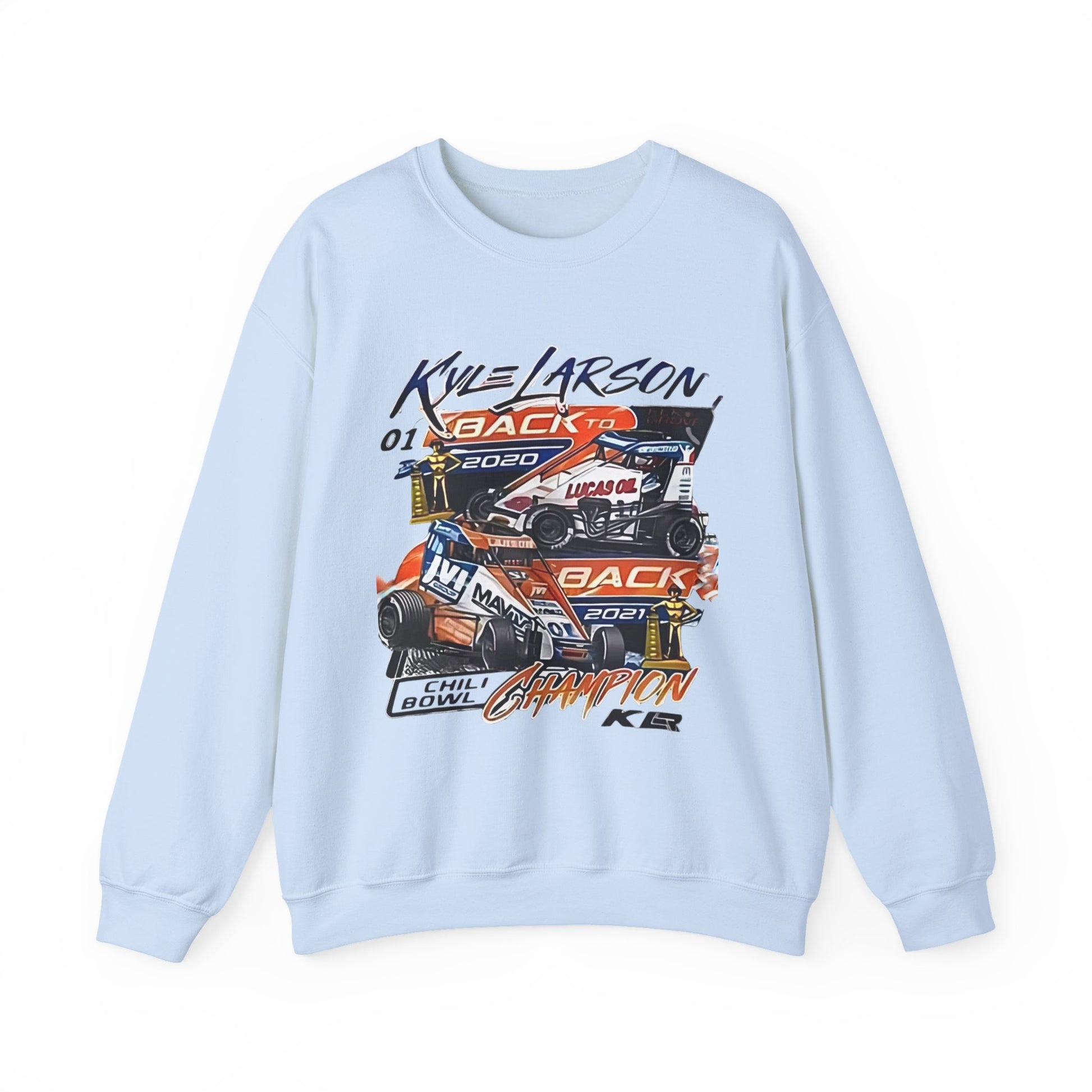 Celebrate Kyle Larson's Dirt Track Racing Back To Back Chili Bowl Champion 2020 and 2021 victories with this cozy Unisex Heavy Blend™ Crewneck Sweatshirt. Perfect for adult fans of dirt track racing, this sweatshirt is made with a medium-heavy fabric blend of 50% cotton and 50% polyester, providing warmth and comfort during colder months. The classic fit and crew neckline offer a comfortable wearing experience, while the double-needle stitching ensures durability. The gray, tear-away label eliminates itchiness, and the ethically grown US cotton ensures sustainability.