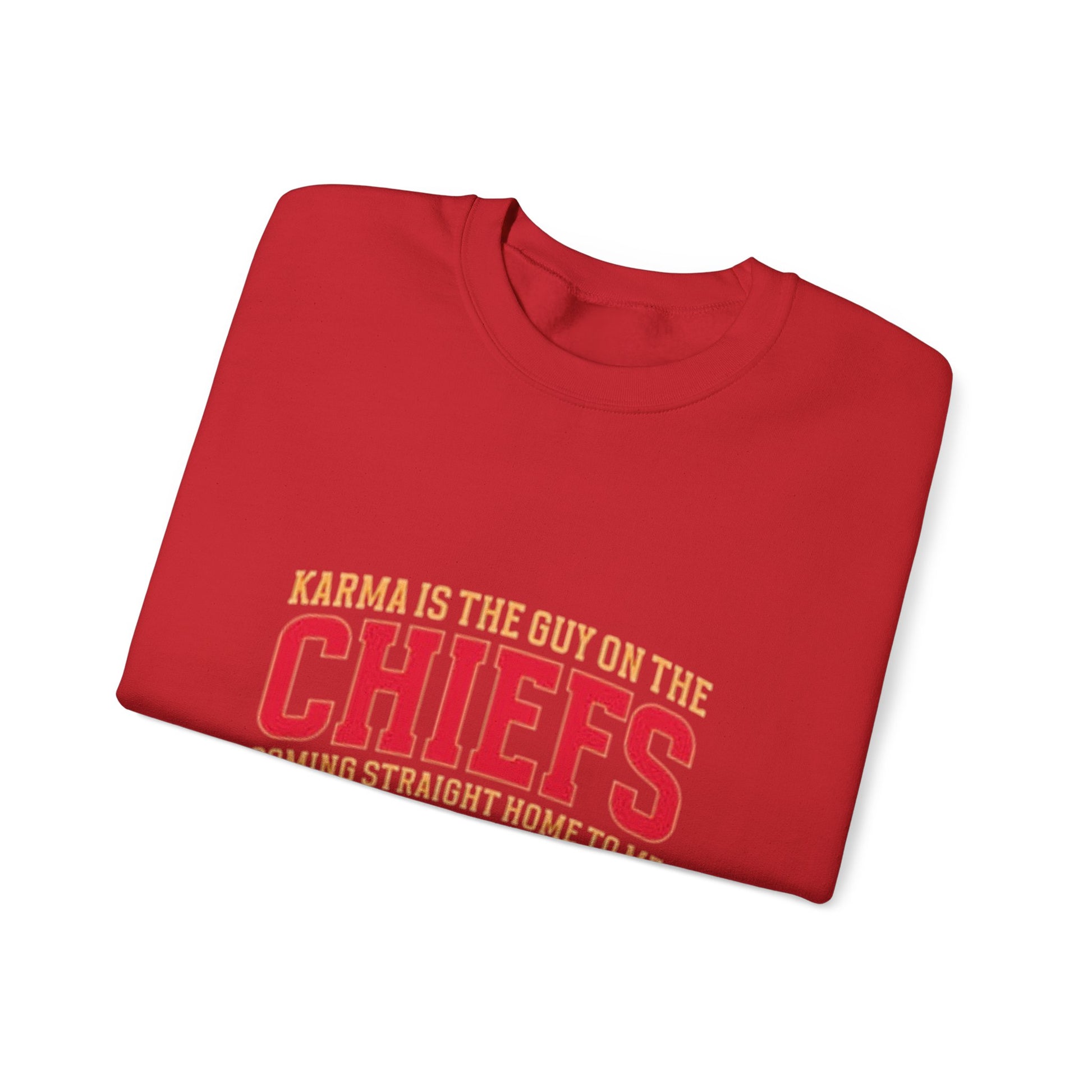 This Travis Kelce Kansas City Chiefs football-themed Unisex Heavy Blend™ Crewneck Sweatshirt is perfect for any die-hard Chiefs fan looking to show their team spirit. The cozy fabric blend of cotton and polyester makes it ideal for staying warm during the colder months. Whether you're attending a game or watching from home, this sweatshirt will keep you comfortable and stylish. Great for gifting during the football season or for any Travis Kelce fan.